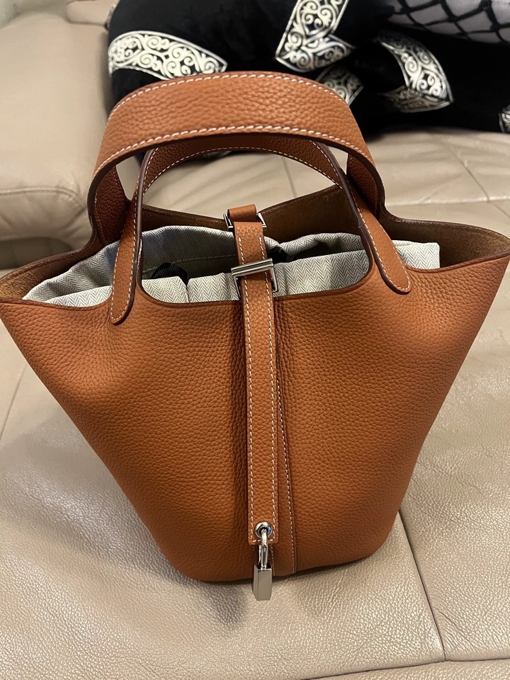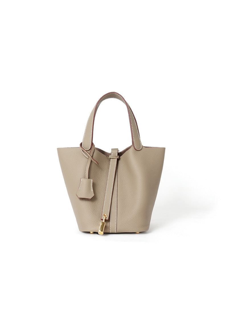 Cow-hide leather women's bucket bag with top handle