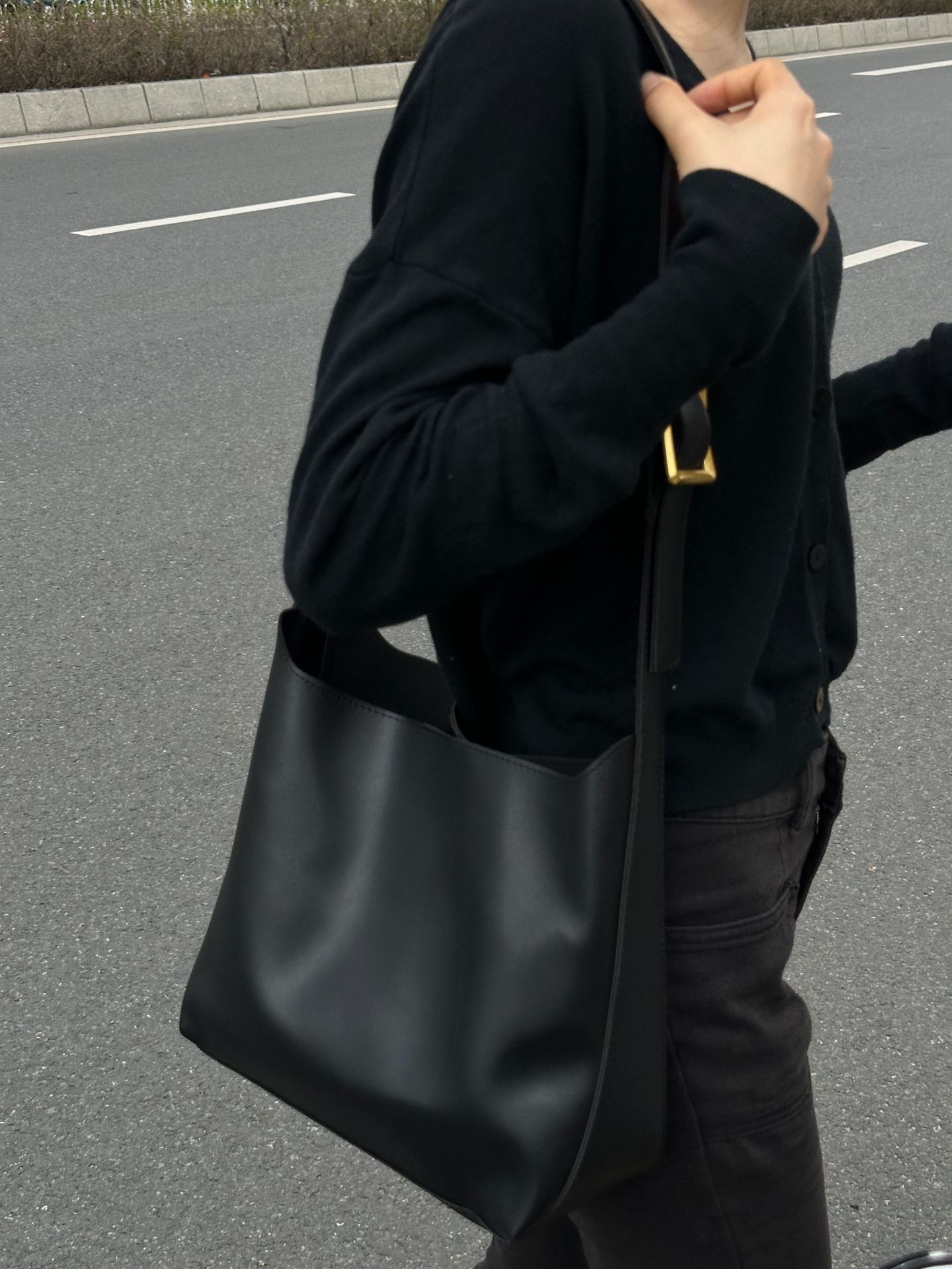 Handbag: New fashionable and versatile bucket, large-capacity, simple and casual two-piece soft collapse one-shoulder crossbody bag